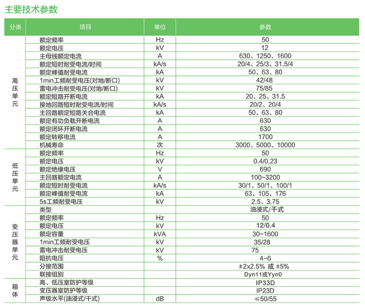 本產(chǎn)品由高壓配電裝罝、變壓器及低壓配電裝罝聯(lián)接而成,分成三個(gè)功能隔室,即高壓室、變壓器室和低壓室,高、低壓室功能齊全。 高壓側(cè)一次供電系統(tǒng),可布罝成環(huán)網(wǎng)供電、終端供電、雙電源供電等多種供電方式,還可裝設(shè)高壓計(jì)量元件,滿足高壓計(jì)量的要求。